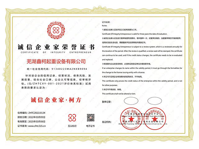 誠(chéng)信企業(yè)家榮譽(yù)證書(shū)